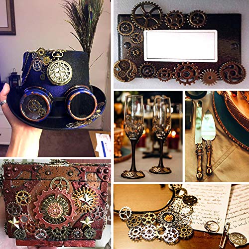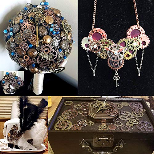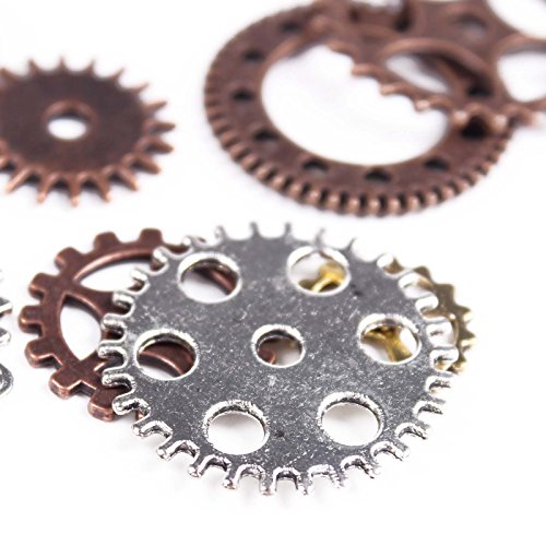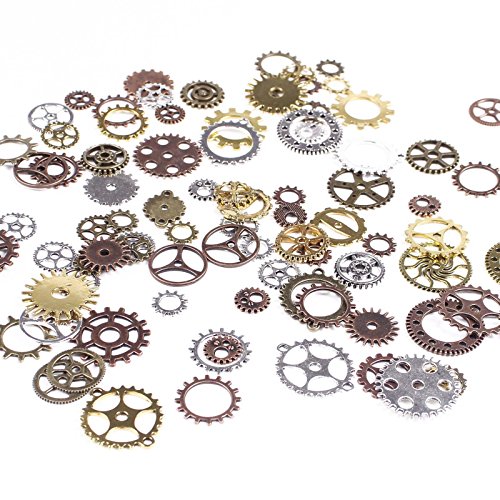 BIHRTC 100 Gram DIY Assorted Color Antique Metal Steampunk Gears Charms Pendant Clock Watch Wheel Gear for Crafting, Jewelry Making Accessory