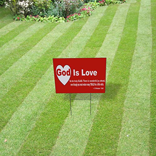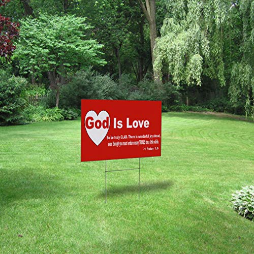 Plastic Weatherproof Yard Sign Bible 1 Peter 1:6 God is Love Christ Heart The Bible White God for Sale Sign Multiple Quantities Available 18inx12in One Side Print One Sign