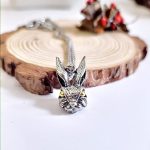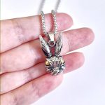 Introducing our captivating Rabbit Pendant Necklace in a stunning silver color with mesmerizing golden eyes. This beautifully designed necklace is adorned with intricate details that will surely catch the attention of onlookers. Crafted with care, this pendant necklace is made of high-quality and durable metal that ensures longevity and enduring beauty. The silver color adds a touch of elegance, while the golden eyes provide a striking contrast, creating a unique and eye-catching piece of jewelry. The pendant size measures 1 1/4 x 1 inches, making it a perfect size to be noticed without being overwhelming. The exquisite craftsmanship and attention to detail make this necklace a standout accessory for any occasion. The necklace comes with a 24″ metal chain, providing a comfortable and stylish length that complements various necklines. The sturdy chain ensures that the necklace stays securely in place while adding a touch of sophistication to your ensemble. Whether you’re looking to add a touch of nature-inspired charm to your everyday outfits or searching for a thoughtful gift for someone special, this Rabbit Pendant Necklace is an ideal choice. Its versatile design makes it suitable for both men and women, allowing anyone to showcase their individual style. Invest in this unique and timeless piece that captures the essence of grace and beauty. It is perfect for casual outings, parties, or even formal events, adding a touch of whimsy and elegance to any ensemble. Elevate your style and embrace the enchanting allure of this Rabbit Pendant Necklace. Order now and experience the perfect blend of elegance and whimsy!