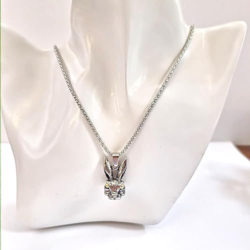 Rabbit Pendant Necklace Silver color with Golden eyes | 24″ Metal Chain | Durable Metal Construction | Pendant Size 1 1/4 x 1 Inches