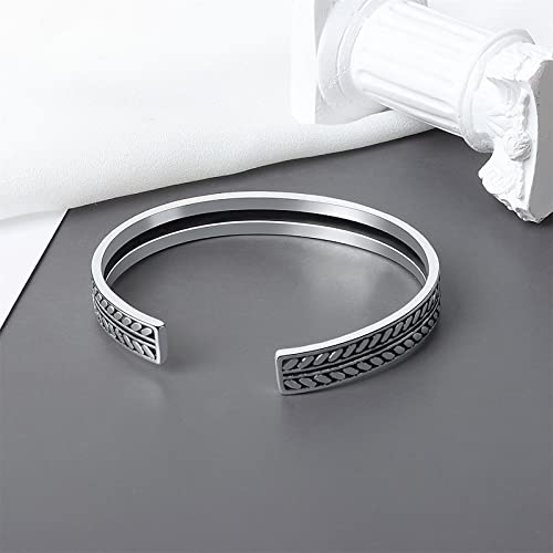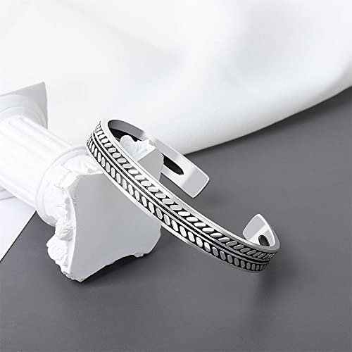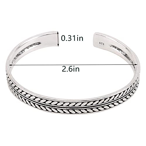 Silver Cuff Bracelet Jewelry For Women Men Vintage Decorative Leaves Pattern Open Bracelet Gift