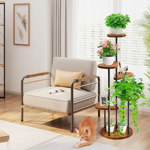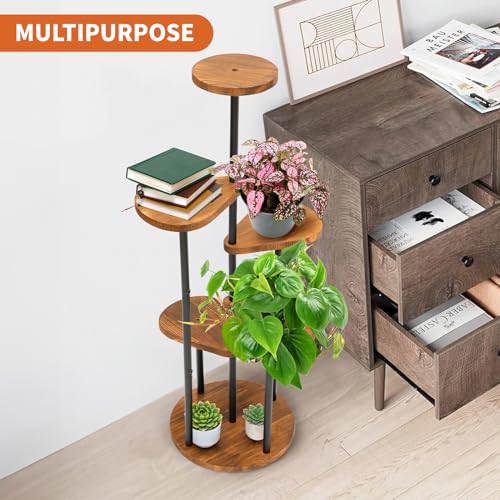 - 【5 Tier Tall Plant Shelf】Size: 13″(L) x 13″(W) x 40″(H). The Indoor Plant Stand includes 5 Tiers 6 Pots, suitable for POTS of all sizes and shapes, with each plant absorbing enough sunlight to thrive. In addition to showing off your lovely plant, you can also use it to take photos or commemorate knickknacks.
