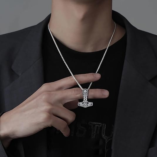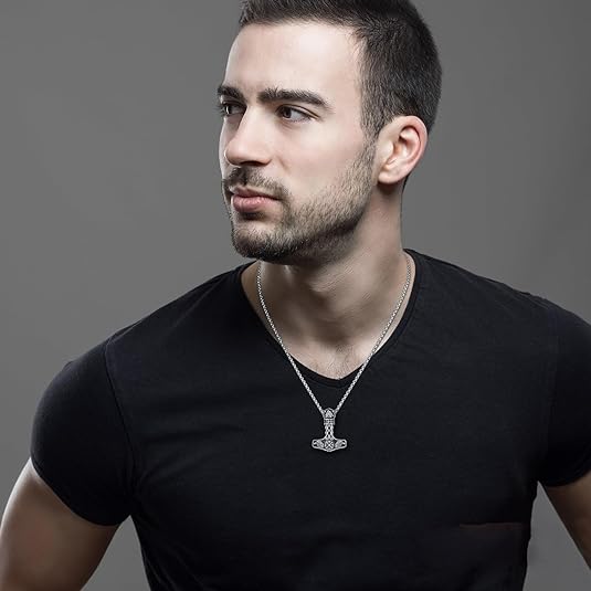 - 💗【Mjolnir Necklace Design】Mjolnir symbolizes as a talisman for battle and life, giving the wearer the strength to overcome difficulties, the courage to face fear, and the generosity to those around him. This is the best Viking necklace for men.