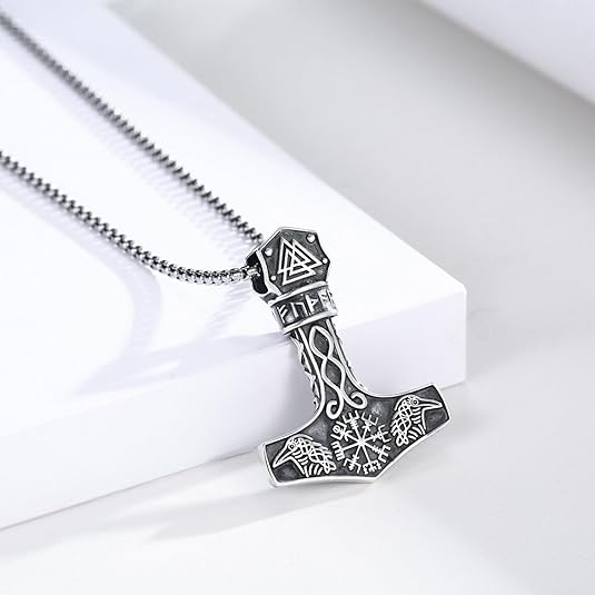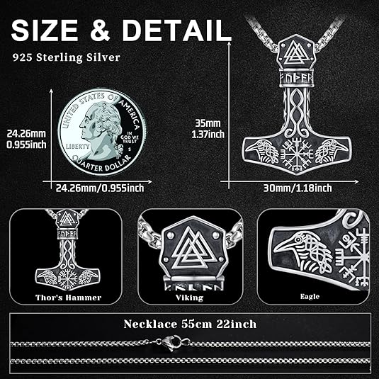 - 💗【Dimensions】 Mjolnir Pendant: 30*35mm/1.18*1.37 inches. Chain length: 22 inches. Packaged in an elegant gift box, perfect for gifting or keeping