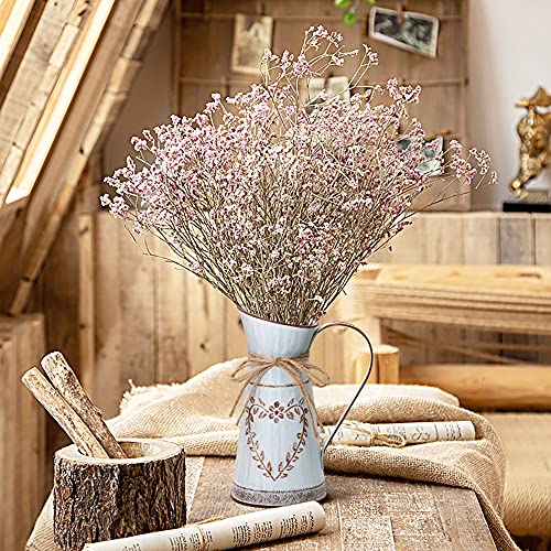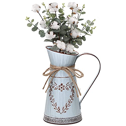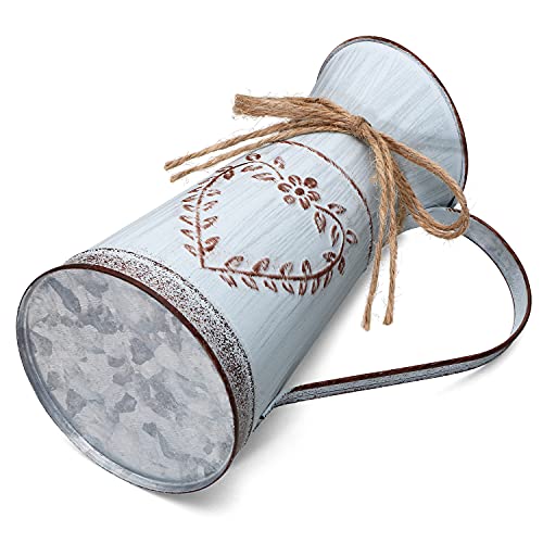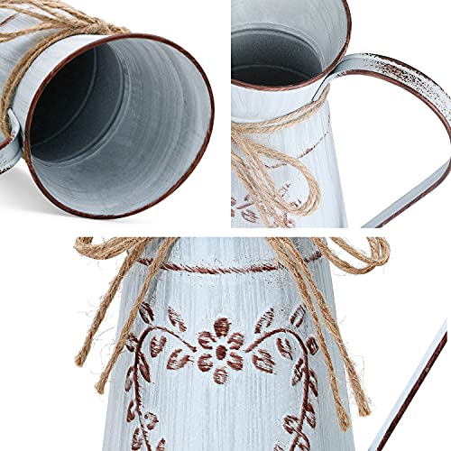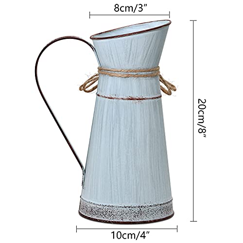 Yoillione French Vase Vintage Farmhouse Vase Decor, Jug Vase Tall Galvanized Vase Small Tin Vase Shabby Chic Jug Planter, Rustic Flower Vase Metal Pitcher Vase with Handle for Wedding Home Garden